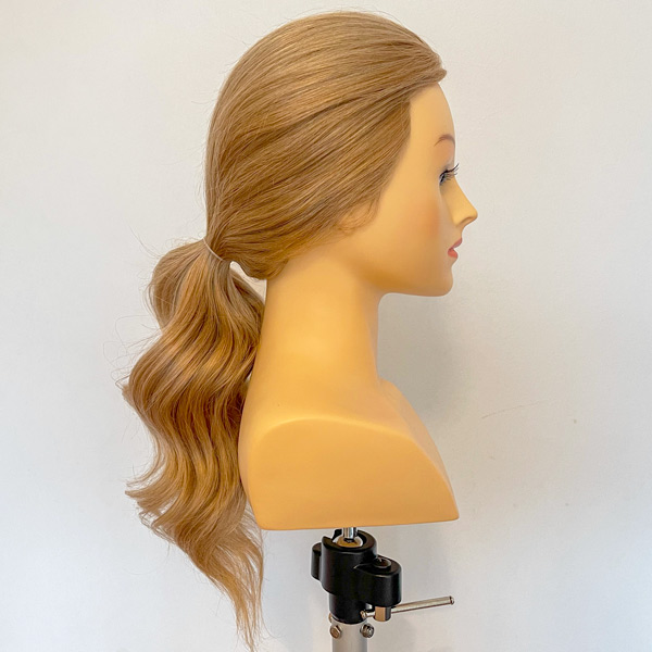 Maniquí profesional Emma de la marca Exalto de cabello natural 100% para uso en prácticas de recogidos y competición. Color rubio y longitud de 50 cm aproximadamente