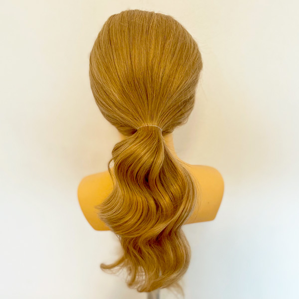Maniquí profesional Emma de la marca Exalto de cabello natural 100% para uso en prácticas de recogidos y competición. Color rubio y longitud de 50 cm aproximadamente.