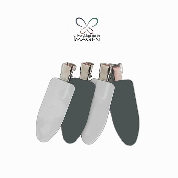 Pinzas antimarca especial recogidos Pack de cuatro pinzas de separación con forma en plancha para utilizar en tus técnicas de recogidos evitando las marcas en el cabello.
