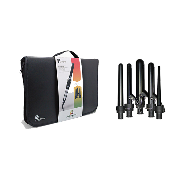 Set de tenacillas de 5 piezas, indispensable para conseguir todos los estilos. Un solo mango con 5 piezas intercambiables, hacen que tengas 5 herramientas en una sola.