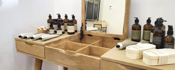 Nuestro salón eco-sostenible está libre de plásticos, se reemplaza por materiales como madera, cristal, corcho, metal y fibras y tejidos naturales, y el mobiliario, de diseño único, está tratado con tintes y barnices al agua. Los tocadores son un elemento que le aporta elegancia, se pueden mover y están adaptados para que el cliente pueda contemplar su ‘look’ desde cualquier ángulo.